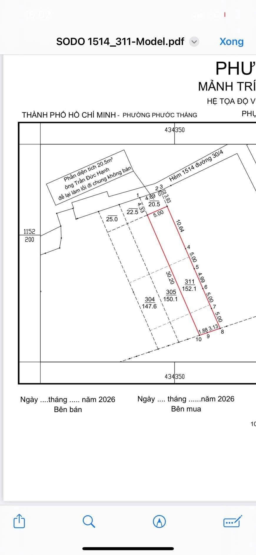 Diện tích: 152m2 ngang 5m có 60m2 thổ cư , sổ đỏ mới tinh