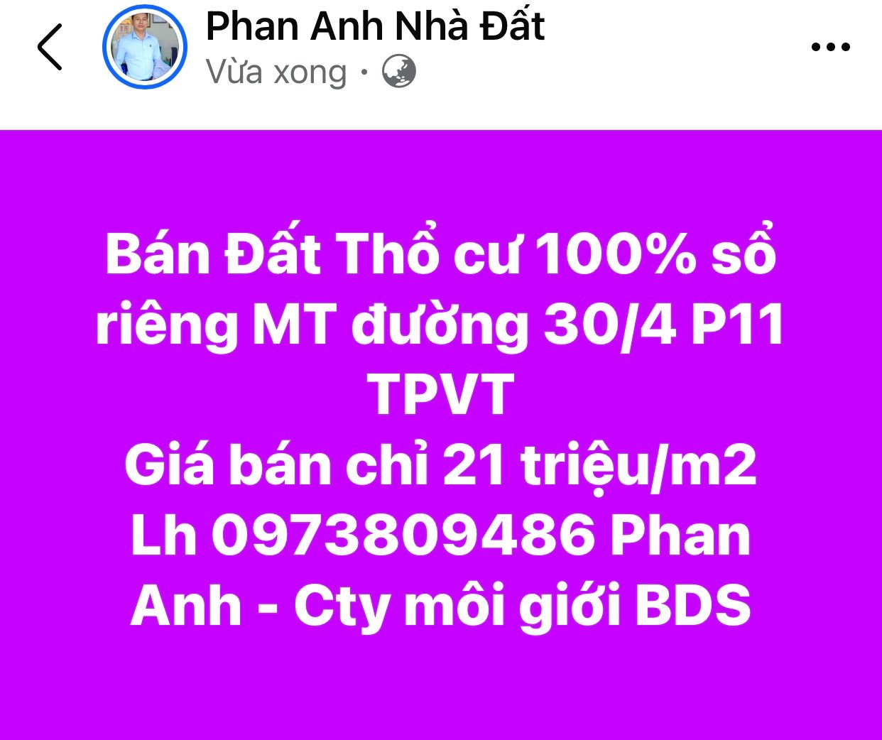 - HOT Bán Đất thổ cư MẶT TIỀN đường 30/4 P11 TPVT